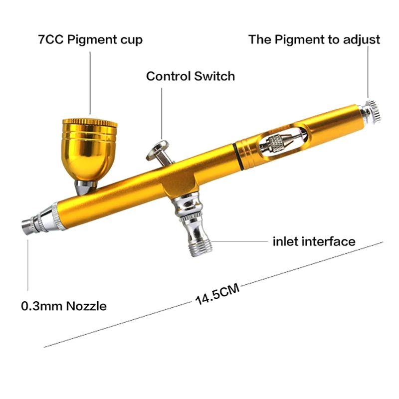 Airbrush Tool Dual Action Gravity Feed 0.3Mm Nozzle Spray Airbrush Nail Art Paint Tattoo Tool With
