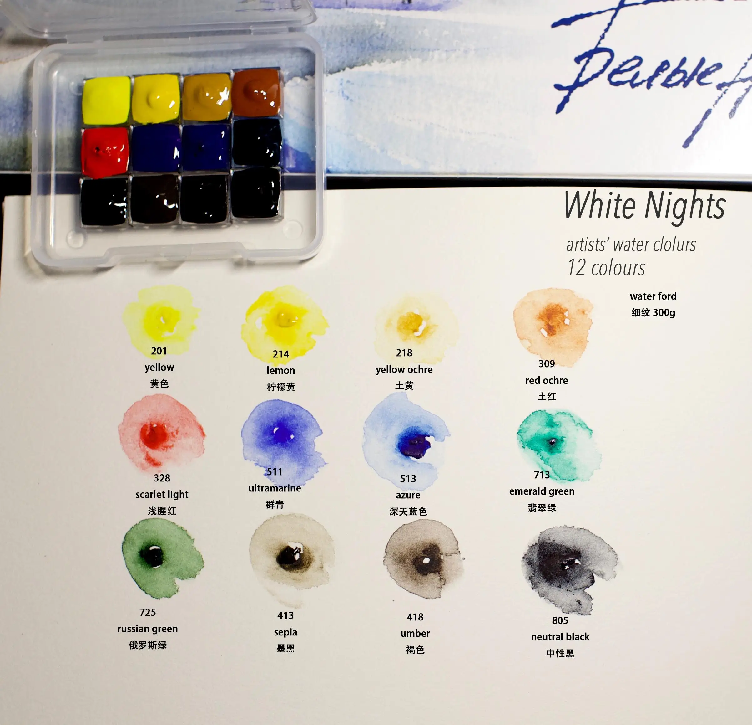 HIGH QUALITY Russian White Night White Nights Watercolors Artists master high concentration 12 Colors 0.5ml Sub